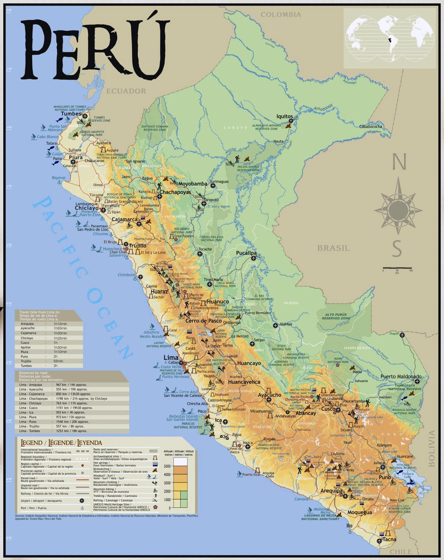 Peruu putovanja mapu